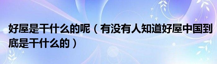 好屋是干什么的呢(有沒有人知道好屋中國到底是干什么的)