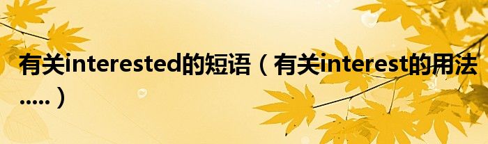 導讀 大家好,精選小編來為大家解答以上的問題。有關interested的短語,有關interest的用法 很多人還不知道,現在讓我們一起來看看吧!對…