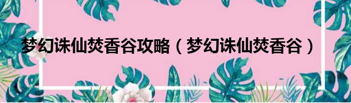 夢幻誅仙焚香谷攻略(夢幻誅仙焚香谷)