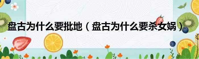 盤古為什么要批地(盤古為什么要殺女媧)