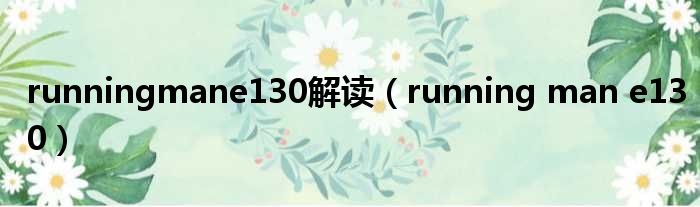 大家好,小霞來為大家解答以上的問題。runningmane130解讀,running man e130這個很多人還不知道,現在讓我們一起來看看吧!