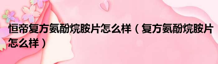 恒帝復方氨酚烷胺片怎么樣(復方氨酚烷胺片怎么樣)