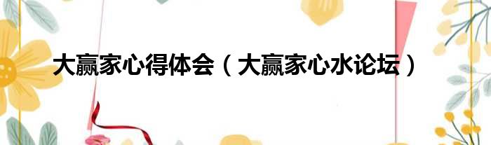 大贏家心得體會(大贏家心水論壇)
