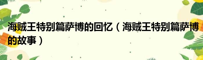 海賊王特別篇薩博的回憶(海賊王特別篇薩博的故事)