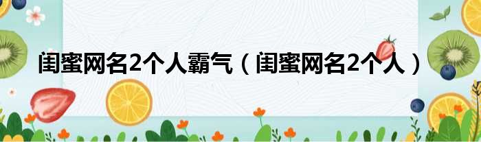 閨蜜網名2個人霸氣(閨蜜網名2個人)
