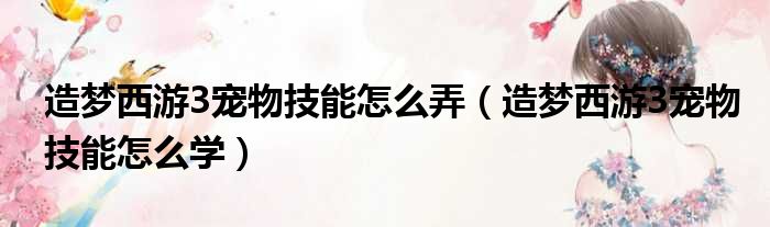 造夢西游3寵物技能怎么弄(造夢西游3寵物技能怎么學)