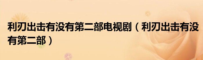 利刃出擊有沒有第二部電視劇(利刃出擊有沒有第二部)