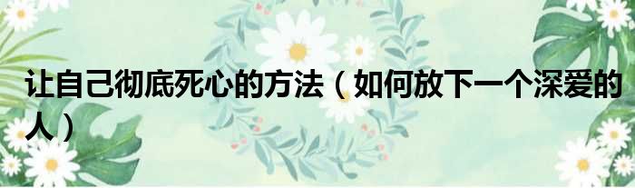 大家好,我是小夏,我來為大家解答以上問題。讓自己徹底死心的方法,如何放下一個深愛的人很多人還不知道,現在讓我們一起來看看吧!