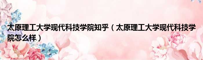 太原理工大學現代科技學院知乎(太原理工大學現代科技學院怎么樣)